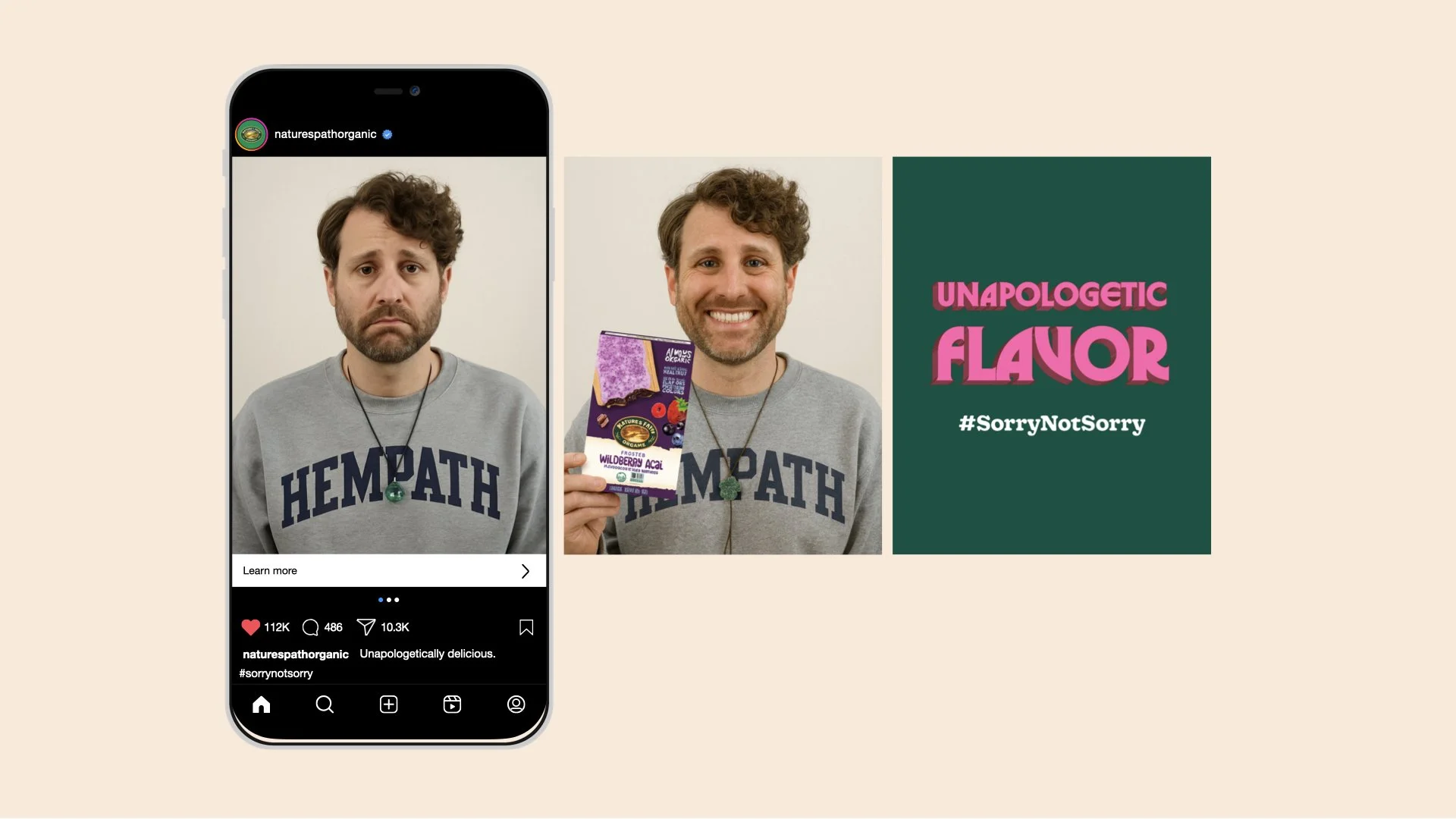 The final say would come from Brother Nature himself. In a short video posted to Nature’s Path’s social channels, he would look straight into the camera and say, “I came on here because a lot of people are expecting me to be sorry, but I’m not. I would do it again.” Halfway through the video, the twist would be revealed. The “junk food” caught in the paparazzi photos was not junk food at all, it was Nature’s Path products the entire time. They simply looked so indulgent and tasted so good that people could not believe they were natural and organic. The video would close with Unapologetically Delicious and the hashtag #SorryNotSorry, flipping the scandal into a proud celebration of flavor.
